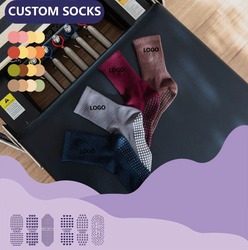 Calcetines de Pilates para mujer, Calcetines antideslizantes para interiores de tubo medio, calcetines deportivos para Yoga, diseño de logotipo bordado, calcetines de punto a rayas