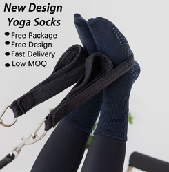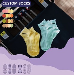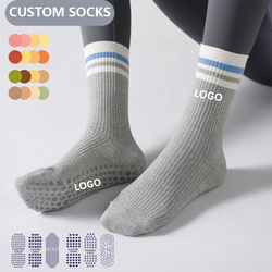Calcetines de Pilates para mujer, calcetines deportivos antideslizantes con agarre de silicona para interiores, calcetines a rayas con diseño de logotipo personalizado