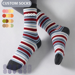 Calcetines coloridos unisex con logotipo personalizado para mujer, de alto contenido calcetines de algodón, calcetines absorbentes de sudor unisex de tubo medio